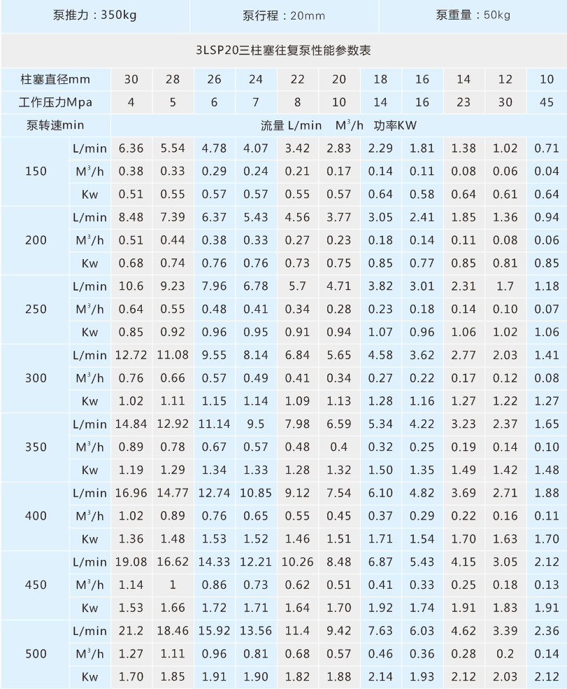 ※ 你選型時表中流量不合適,可用電磁調速,變頻調速,變換柱塞直徑來調節流量,滿足選型需要。