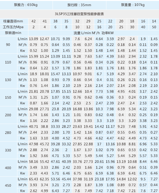 ※ 你選型時表中流量不合適,可用電磁調(diào)速,變頻調(diào)速,變換柱塞直徑來調(diào)節(jié)流量,滿足選型需要。